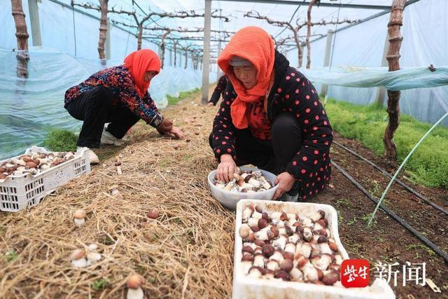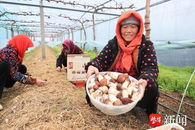 阳春三月,大地回春,万物复苏。2月23日,在连云港市赣榆区沙河镇大鹏水果种植专业合作社葡萄大棚内,一派生机勃勃的景象展现在眼前。葡萄架下的菌垄上,一丛丛赤松茸破土而出,菌伞上还挂着晶莹的露珠,仿佛是初春的珍珠。村民们忙碌地穿梭在菌垄间,细心地采摘着每一朵新鲜出土的赤松茸。